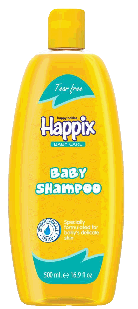 Happix baby shampoo; with the special enhanced tearless formula. Happix cleans your baby’s sensitive skin and prevents drying. Besides it provides a fresh smelling, beautiful looking healty and shining hair with its soap free hypoallergenic formulation.