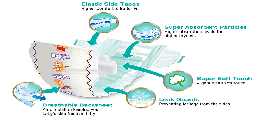 Happix Premium diapers were produced to aim 100% customer satisfaction.