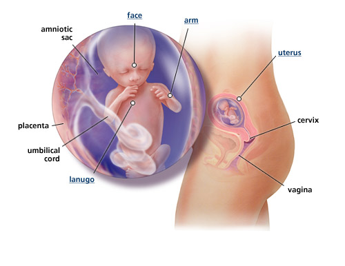 Your baby's placenta is now fully functional but remains larger than the baby (until about 16 weeks). The placenta supplies your baby with oxygen, fats, proteins, vitamins and minerals as well as removing carbon dioxide and waste materials, by filtering them through the placental tissues attached to the uterus. This intricate process of diffusion makes these exchanges possible because the tiny blood vessels of mother and baby are incredibly close together, yet remarkably always separate.